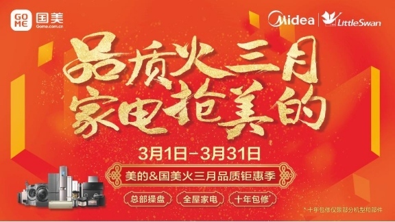 一年一度声势浩大的苏宁易购"国货节"也即将于3月8日至3月17日开展,为美的"品质火三月,家电抢美的"钜惠盛典推波助力。