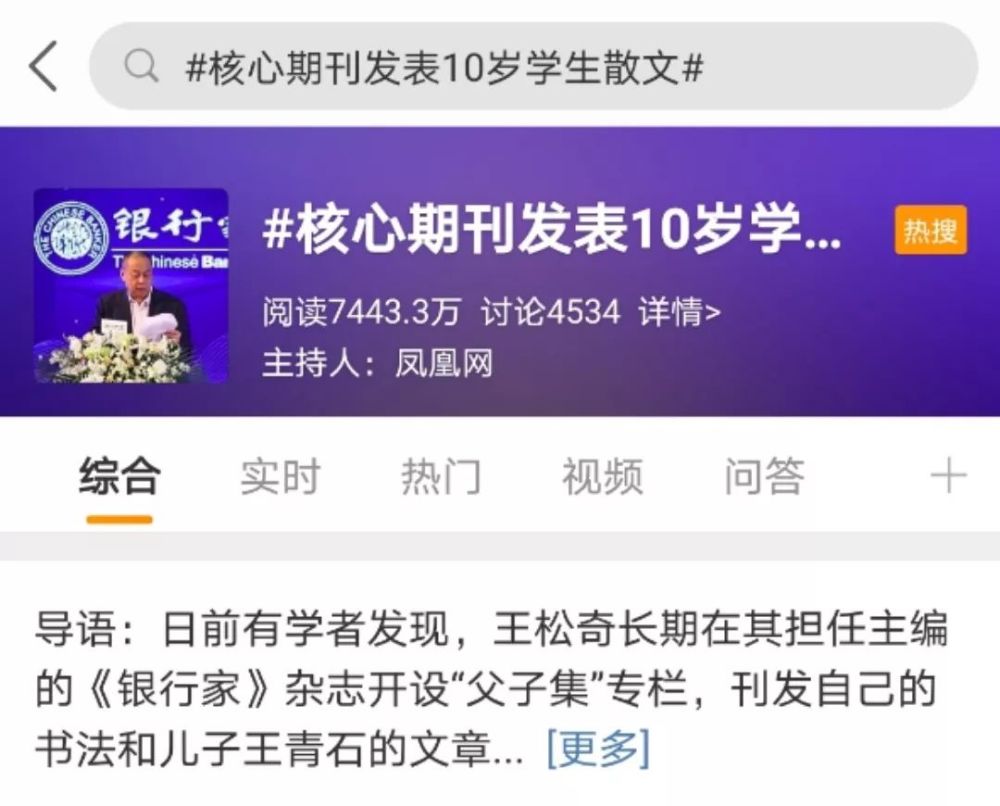 新华每日电讯稍早的一则报导称,针对王青石的文章登上《银行家》杂志一事,王松奇回应说,《银行家》杂志首要刊登银职业的实践事务、前沿问题和国外的一些先进管理经验等。而其间《文明休闲》栏目首要刊登各种诗篇、书法、绘画、回忆录等著作。“一切的稿件都有专门的团队策划、审稿。”王松奇说,他以为刊登自己的书法著作和孩子的文章“没问题”。
