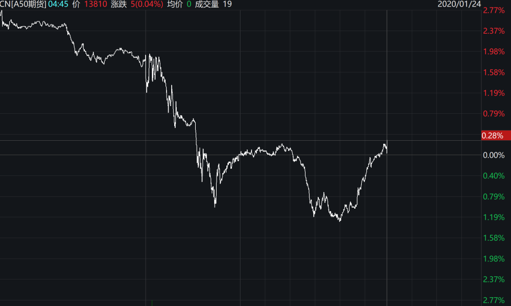 音讯发布后,新加坡富时我国A50指数期货由跌转涨,夜盘买卖时段最低曾跌1.25%。