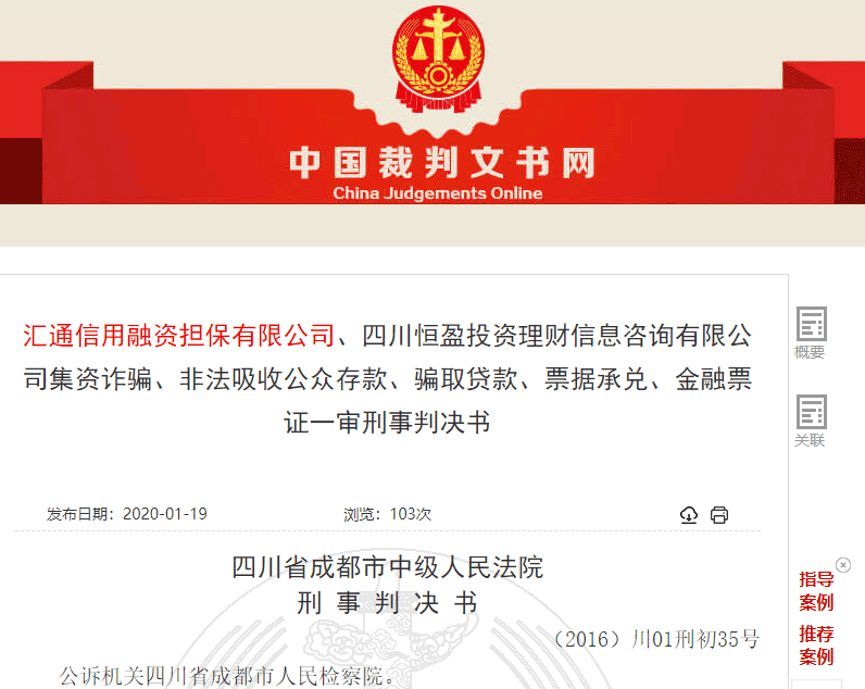 2016年,汇通公司集资欺诈、不合法吸存等案子开端初审,历经三年,2019年12月6日该案子一审宣判。