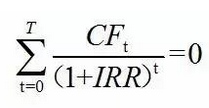 IRR就是现金流入现值总额与现金流出现值总额相等、净现值等于零时的折现率。计算公式如下: