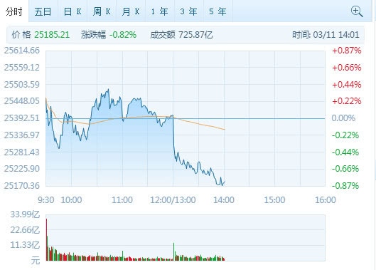 腾讯证券3月11日讯 受全球商场震动影响,港股今天走势重复,恒指午后跌幅扩展,到发稿跌落0.75%。国企指数跌落0.89%,红筹指数跌落0.96%。