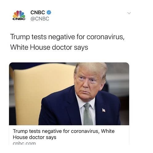 据CNBC周日(3月15日)最新音讯,白宫医师表明,美国总统特朗普新冠病毒检测成果为阴性。