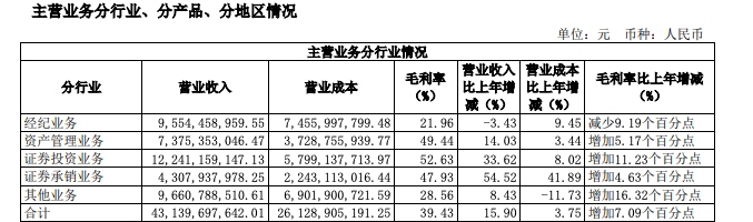不过,中信证券生意事务则呈现3.43%的小幅下滑,完结营收95.54亿元。