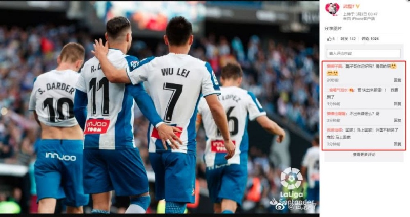 音讯曝光后,武磊的微博瞬间被攻陷。武磊发布的最新一条微博,是来自3月6日的一次推行,现在现已有许多球迷在该条微博下留言,问询他是否安全。而他的微博现已长达15天没有更新,球迷依然期望“国足一哥”能报个安全,哪怕辟个谣。