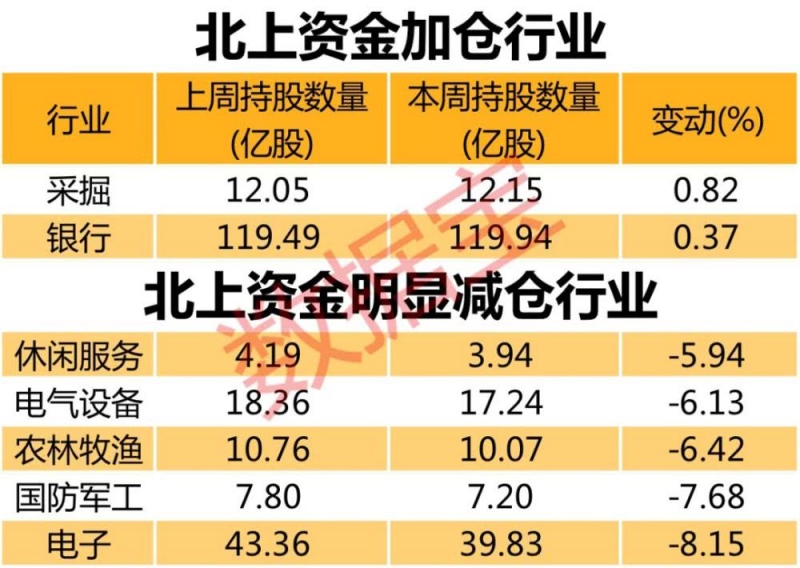 证券时报·数据宝计算显现,本周北上资金持股数量环比添加职业有两个,分别为采掘、银行。