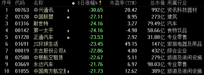 一周港股通标的涨跌幅榜: