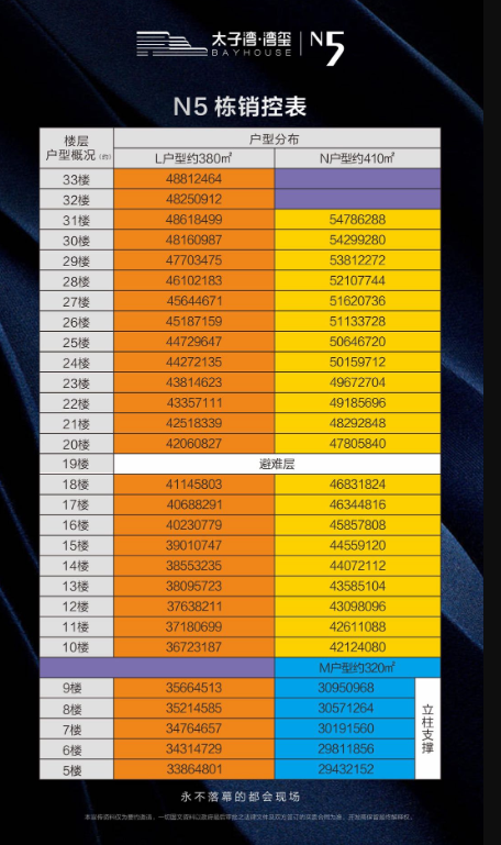 据悉,这次推售的太子湾·湾玺N5栋公寓,带精装交楼,是该项目的最后一批一手公寓。N5栋总高33层,只有55套房源,主要推售面积约320、380和410平米的5房至6房。批售单价大约是每平米9万至13万,单套房总价大约是2900-5500万元。