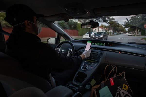 4月2日,在美国加利福尼亚州贝弗利山,一位因新冠疫情而赋闲的音乐家在送外卖。(新华/法新)