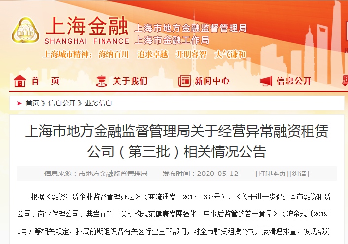 事实上,2019年11月20日、12月24日上海金融监管局曾公示过两批运营反常融资租借公司名单,算计为554家。本次第三批是数量最多的一次。