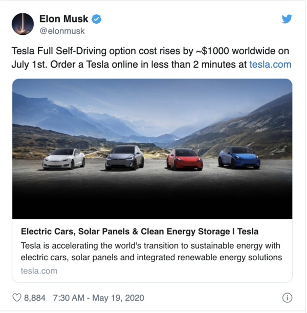 (原标题:韭菜又熟了?马斯克:特斯拉全无人驾驶7月1日起再提价7000元)