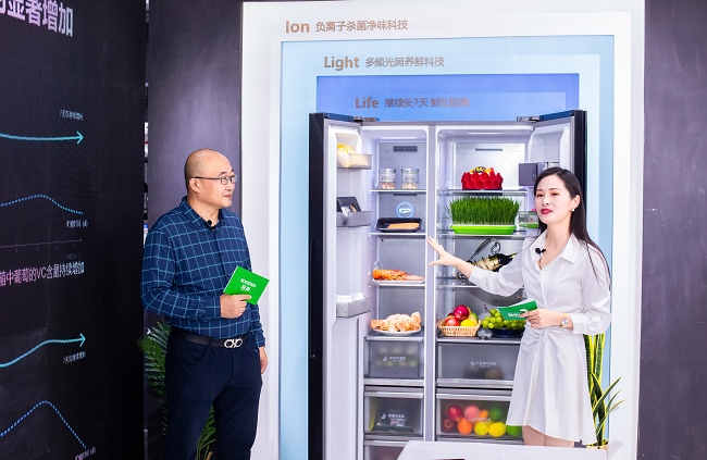 冰箱的基础功能是保鲜,随着科技的进步和消费者生活质量的提升,单纯保留食材的新鲜已经不能满足广大消费者的需求,而容声洞悉到这个问题,已将冰箱的功能着眼于更远的“养鲜技术”上。经过多次研究和探索,容声通过模拟自然生长的生态环境,终于发现了植物的“养鲜公式”:Water(水)+Ion(离子)+Light(光)=Life(生长),并将其应用在容声WILL时尚版冰箱中。