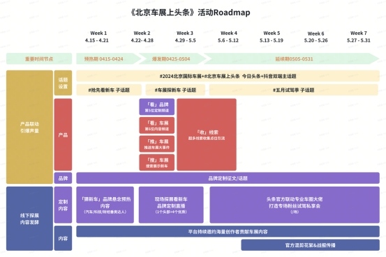 在2024北京车展开幕之前,今日头条就率先于4月15至21日引爆品牌声量,通过设置“抢先看新车”子话题来预热北京车展,拔高用户对新车的期待。